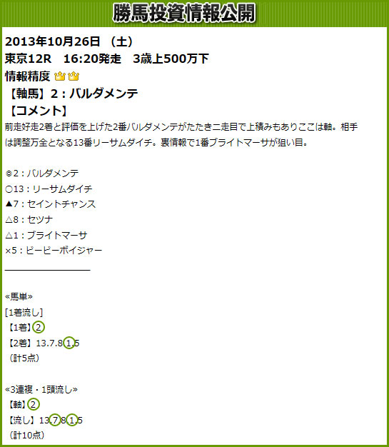 ◯注目馬情報が当たっていたサイト
